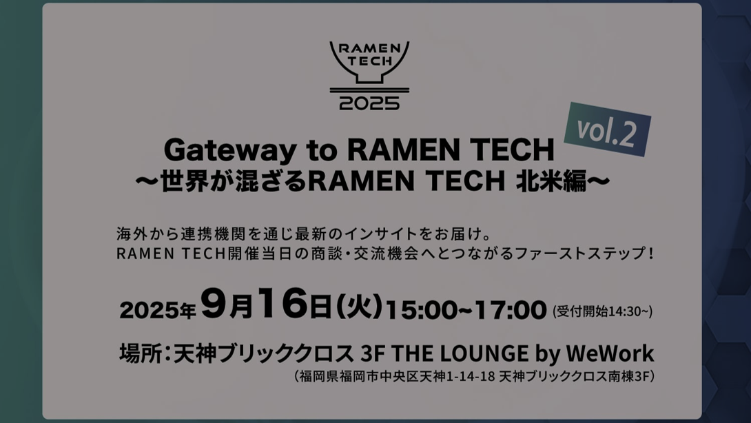 RAMEN TECH(Revolutionizing Asia: Merging Ecosystems & Networks - Tech)は、福岡からアジア、そして世界へと広がる ーラーメンが大陸から日本へ渡り、福岡で独自の進化を遂げて「豚骨ラーメン」として世界に広がったようにー スタートアップの未来を創造する祭典です。