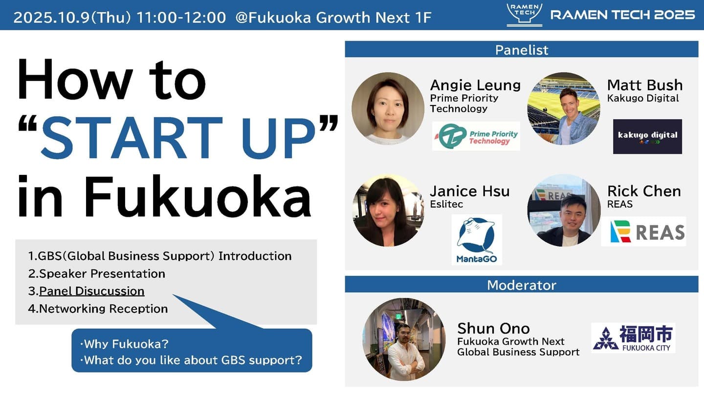 RAMEN TECH(Revolutionizing Asia: Merging Ecosystems & Networks - Tech)は、福岡からアジア、そして世界へと広がる ーラーメンが大陸から日本へ渡り、福岡で独自の進化を遂げて「豚骨ラーメン」として世界に広がったようにー スタートアップの未来を創造する祭典です。