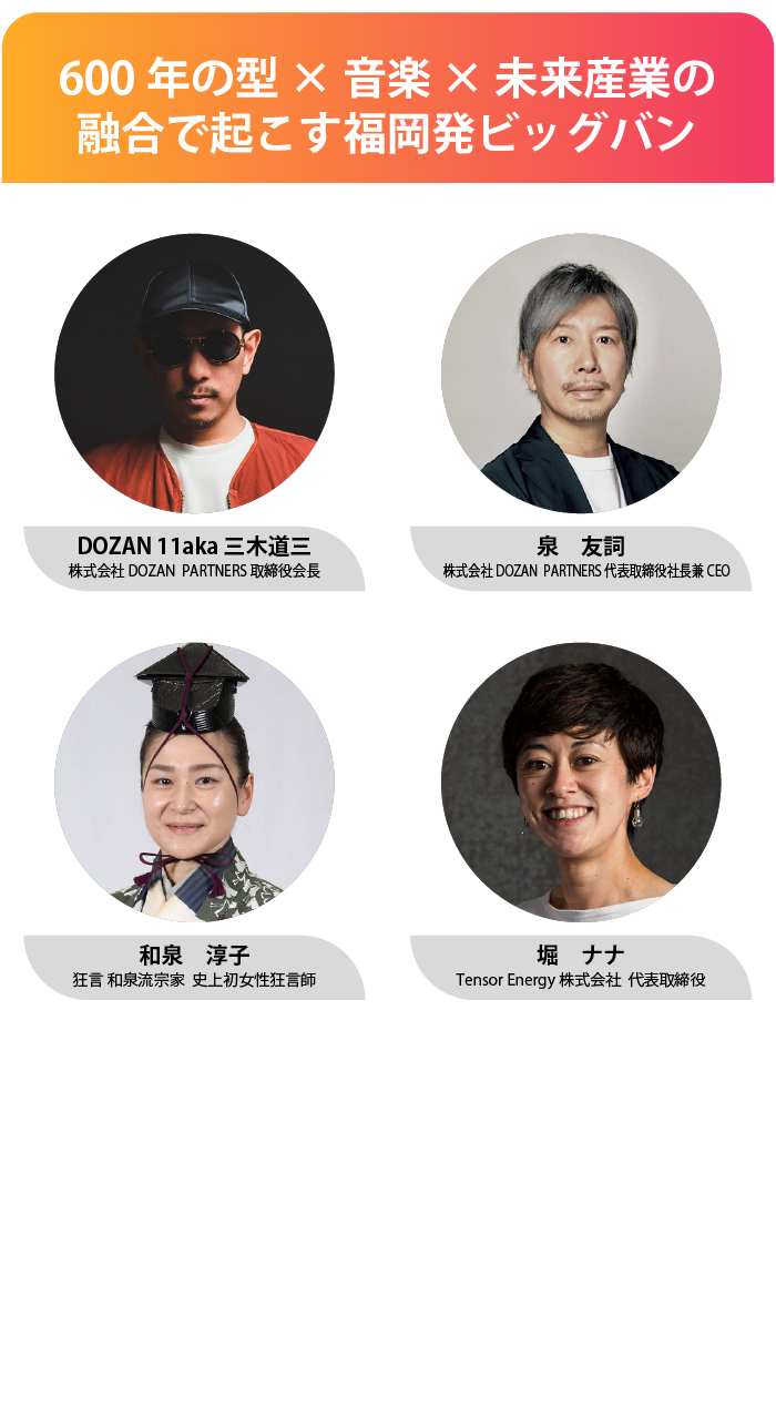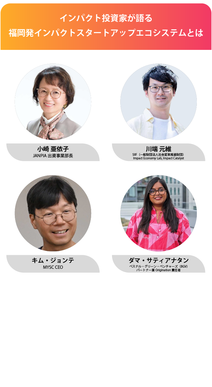 まるでラーメンのスープがさまざまな素材が混ざり合い唯一無二の味を生み出すように、スタートアップやテクノロジーの種もここ福岡で出会い、混ざり、熟成し、未来を形づくる新しいテクノロジー、クリエイティブな発想、そして日本・世界を変えるインパクトへとつながります。